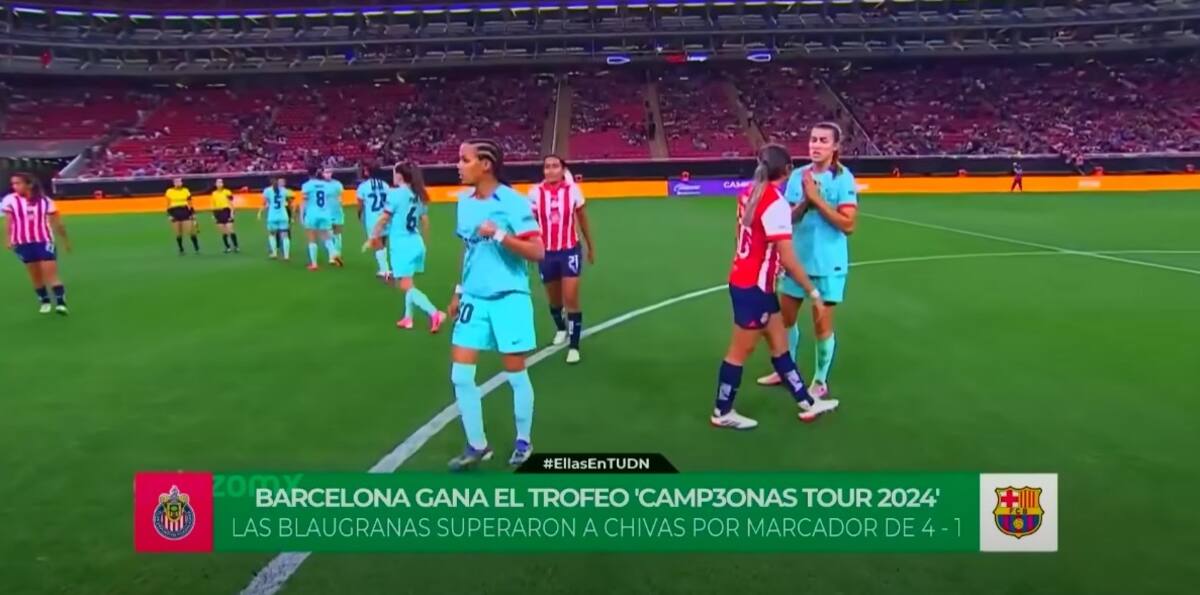ZAPOPAN, Jalisco.- En una gira que ha consolidado su supremacía, el Barcelona Femenil ha dejado huella en México con un récord impecable de victorias. Tras vencer al América y Tigres en 2023, las campeonas de Europa continuaron su racha triunfante la noche del miércoles al derrotar a Chivas Femenil con un marcador de 1-4 en el “Camp3onas Tour 2024″. Sin embargo, el encuentro no solo dejó destellos de habilidad futbolística, sino también un momento de tensión postpartido.