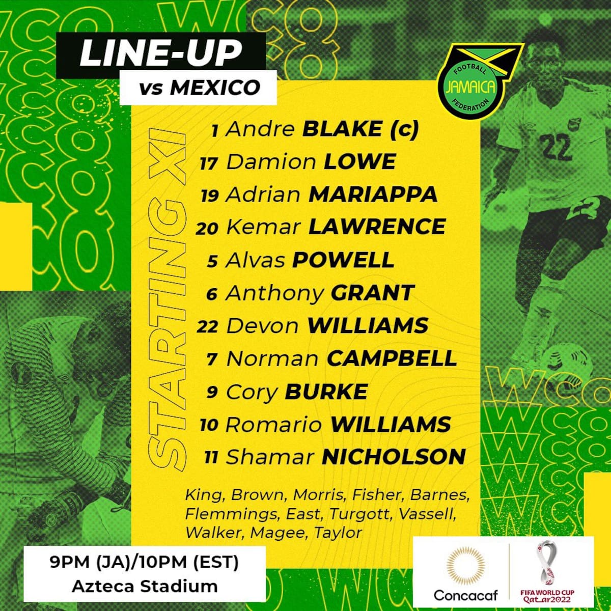 6:43 PM: La Selección Nacional de Jamaica da a conocer a los once futbolistas que iniciaran el camino mundialista a Qatar 2022.
