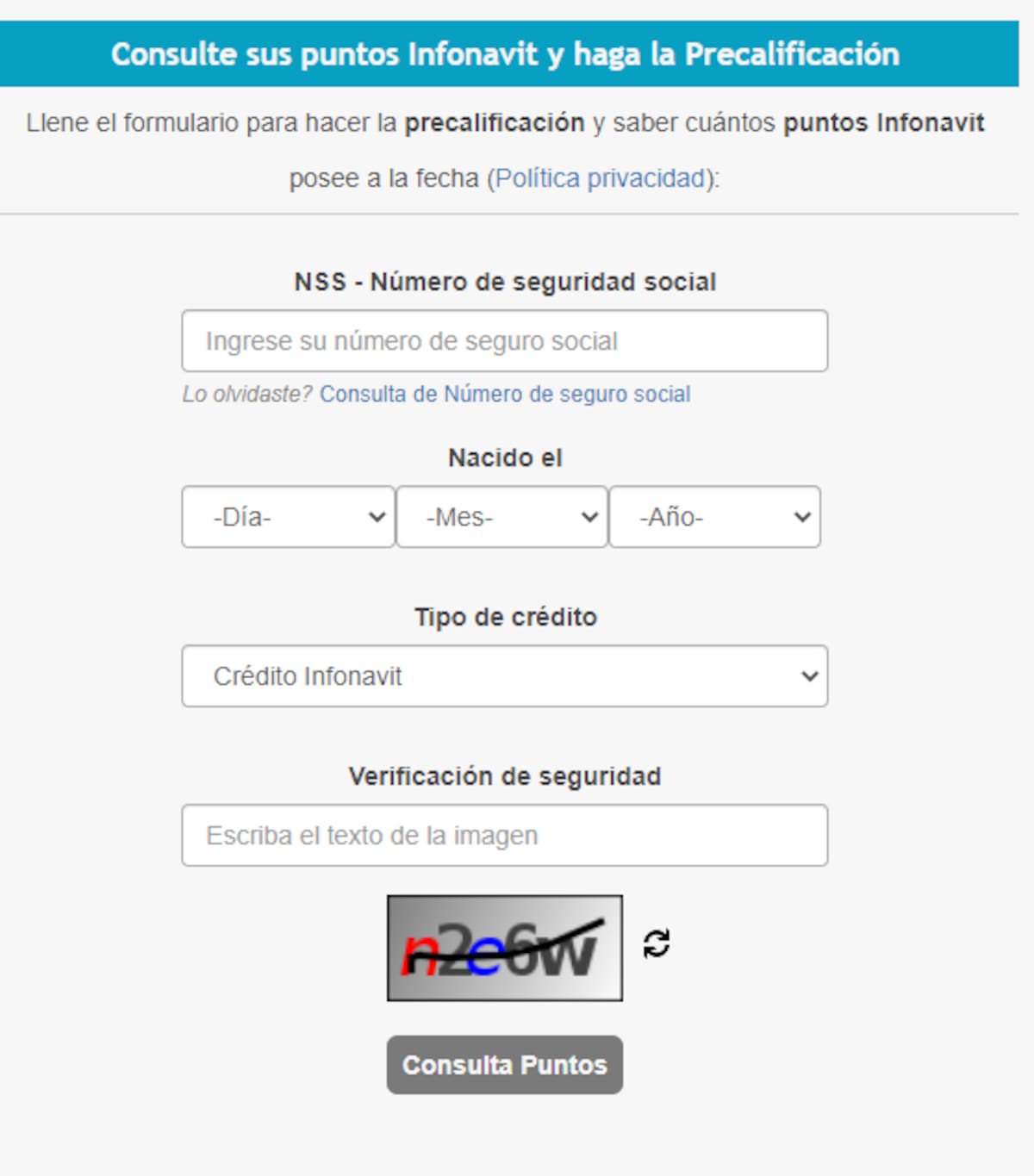 Si no está en condiciones de recibir un crédito Infonavit (por falta de aportaciones, falta de relación laboral vigente u otro motivo), no podrá hacer la consulta online de sus puntos.