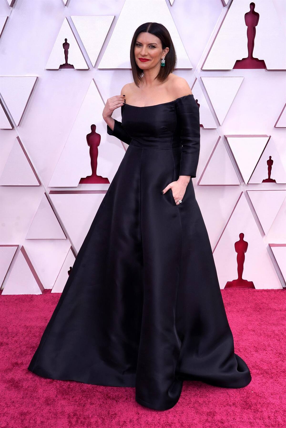 A pesar de ser un año complicado, con grandes pérdidas económicas en el cine, los Óscar son los Óscar, la gran fiesta del cine en la que los actores quisieron lucir sus mejores galas como Pausini, con un impresionante vestido negro de la firma Valentino y joyas de Bulgari.