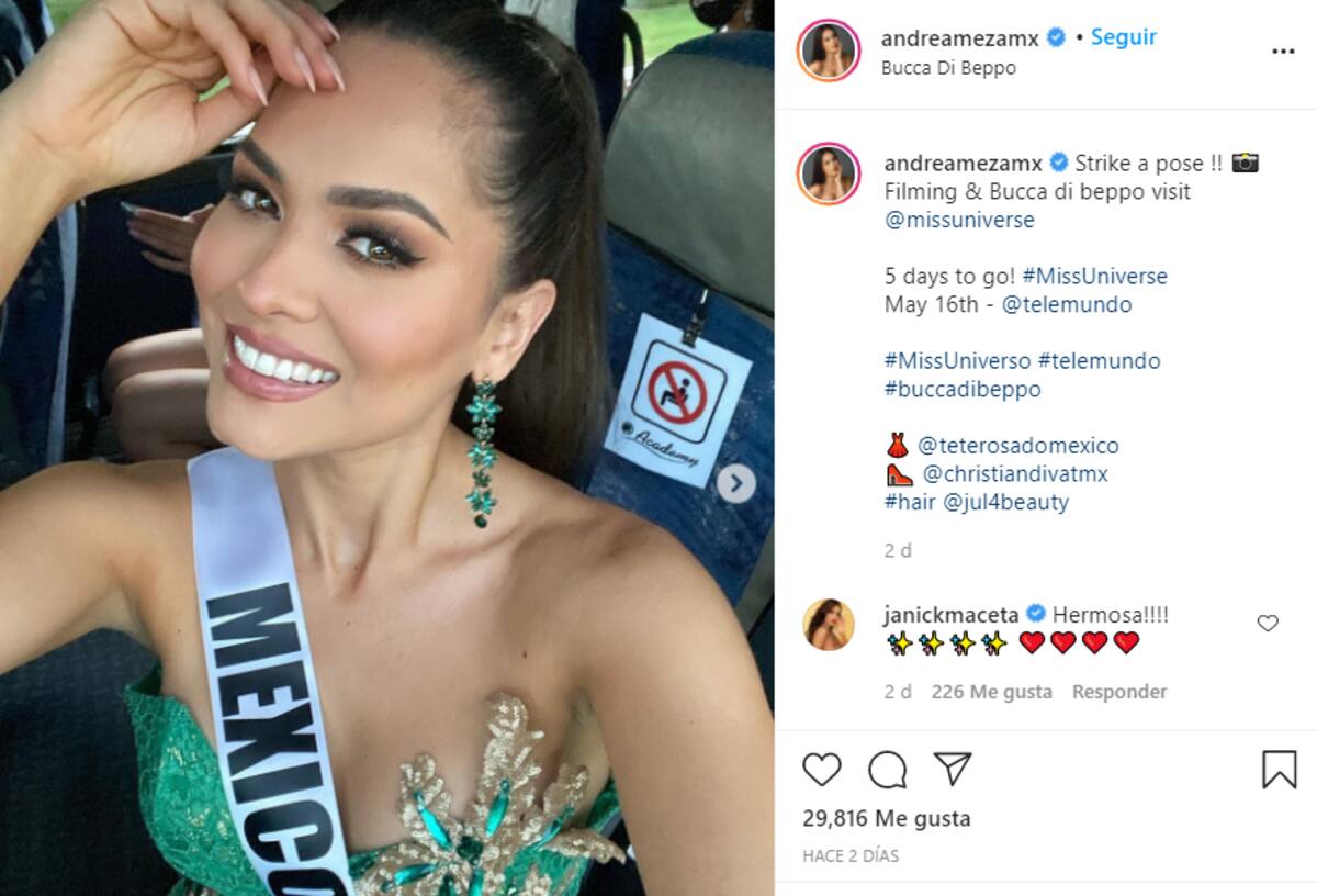 La modelo también optó por compartir fotografías de su traje en sus redes sociales, donde cuenta con más de 200 mil seguidores, Meza expresó lo orgullosa que estaba por representar a nuestro país y, sobre todo, su rica cultura.
