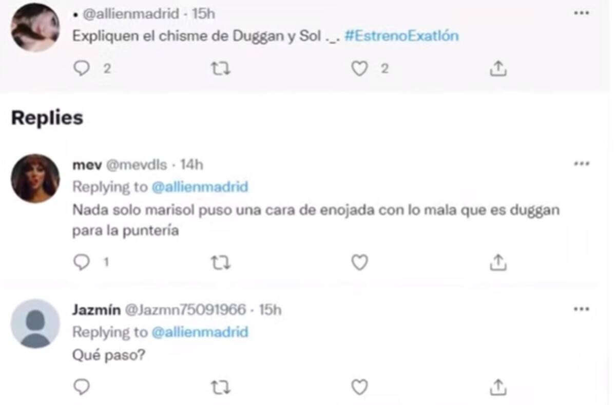 De acuerdo a las cuentas de spoilers de Exatlón, Duggan y Cortés no se llevan nada bien, ya que ambas tienen un temperamento y carácter muy fuerte.
