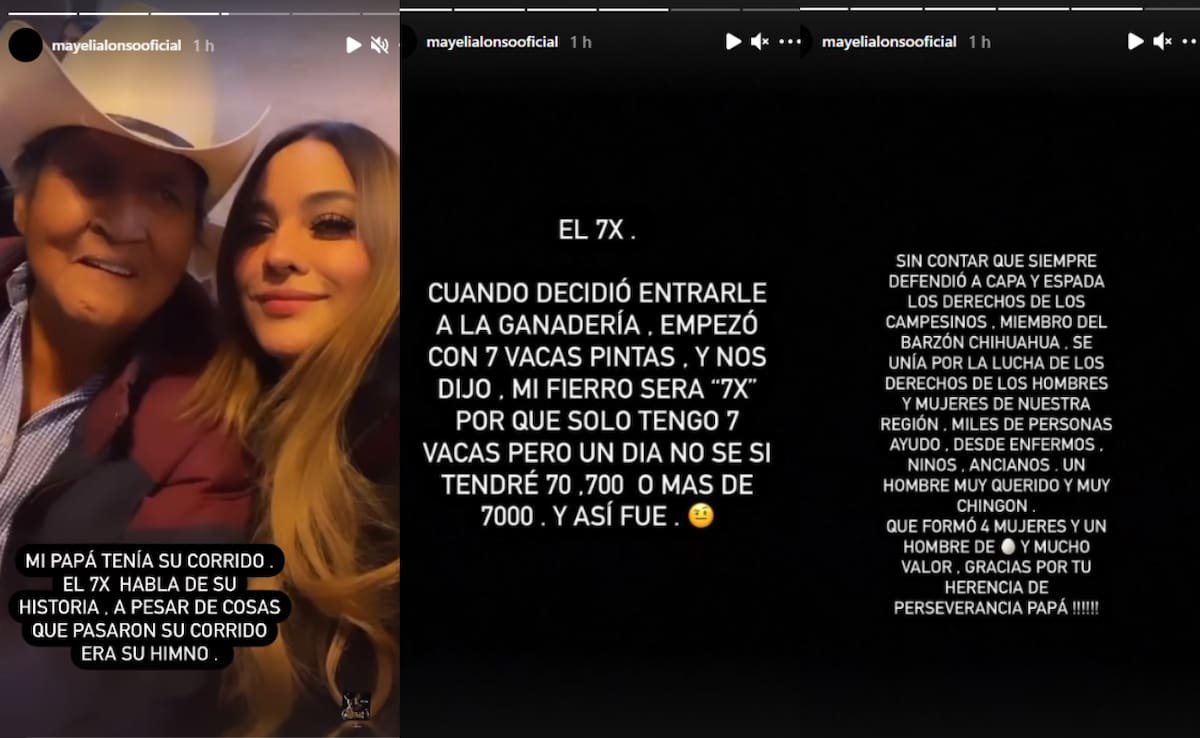 Ante esta inesperada noticia y sufrible pérdida, Mayeli Alonso compartió en su cuenta personal de Instagram hace una hora, un mensaje de amor para su padre donde se despidió y, una vez más, recalcó que su partida era una terrible tristeza y un dolor muy grande para ella y su familia.