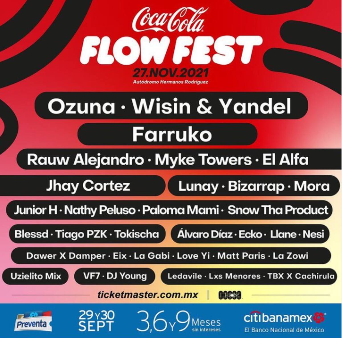 Hace poco más de dos meses que el Coca-Cola Flow Fest 2021 anunció que estarían presentes los ya mencionados músicos además de El Alfa, Jhay Cortez, Lunay, Bizarrap, Mora, Junior H, Nathy Peluso, Paloma Mami, Snow Tha Product, Blessd, Tiago PZK, Tokischa, Álvaro Díaz, Ecko, Llane, Nessi, Dawer X Damper, DJ Young, VF7, entre muchos otros más.