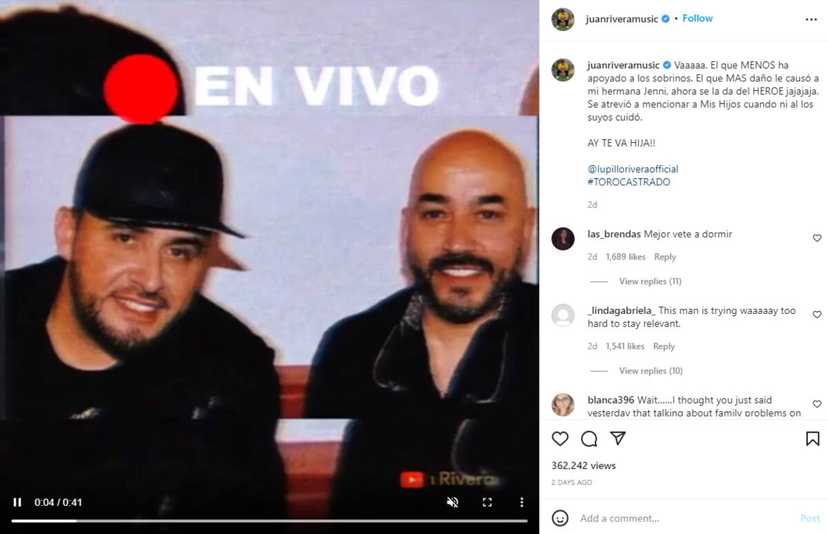 Luego del controversial video en el que habló de Rosie, Lupillo Rivera, Juan Rivera y Rosa Saavedra usaron sus respectivas redes sociales para pronunciarse sobre la polémica. Aunque al principio, Juan Rivera dijo que no daría explicaciones sobre los señalamiento de su sobrina, hace unas horas publicó en su perfil de Instagram un contundente mensaje dirigido a Lupillo Rivera, quien respaldó a Chiquis en sus acusaciones.