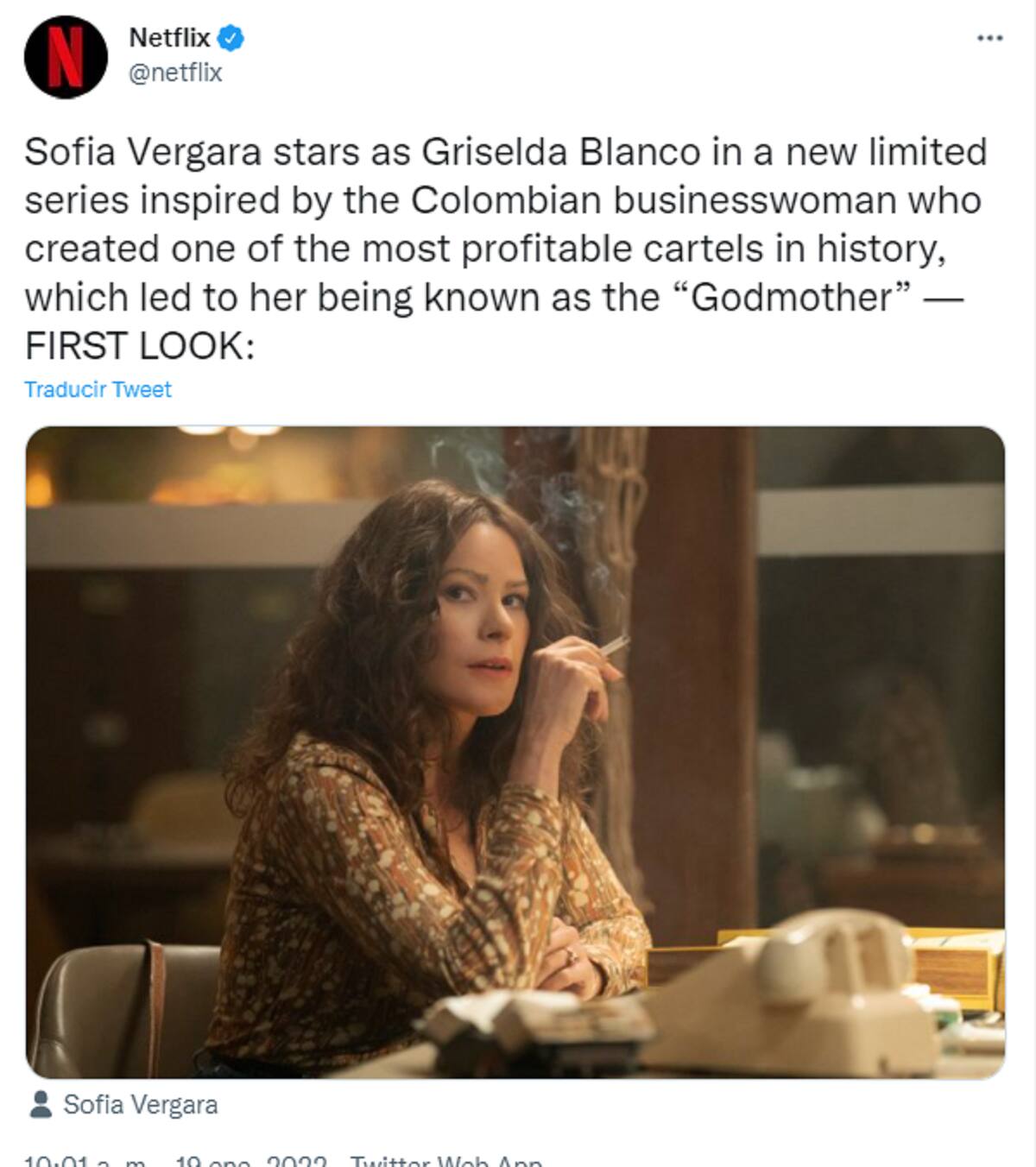 Vergara protagonizará la serie de Netflix que aborda la historia de la narcotraficante colombiana, por lo que la plataforma de streaming ha lanzado la primera imagen de la actriz interpretando a Griselda.