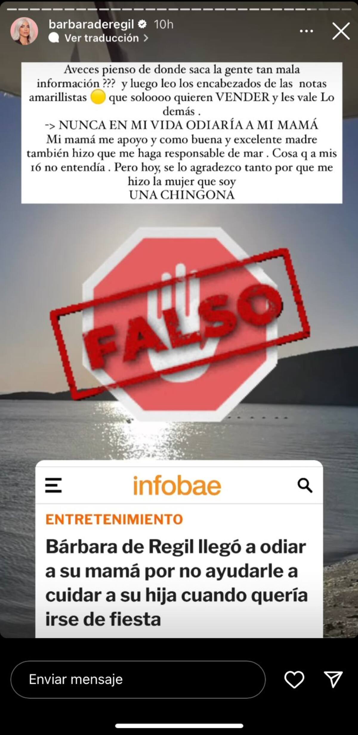 Fue por medio de su cuenta de Instagram que Bárbara de Regil “explotó” debido a una noticia que se habría estado compartiendo en distintos medios donde se llegó a decir que “odiaba” a su mamá.