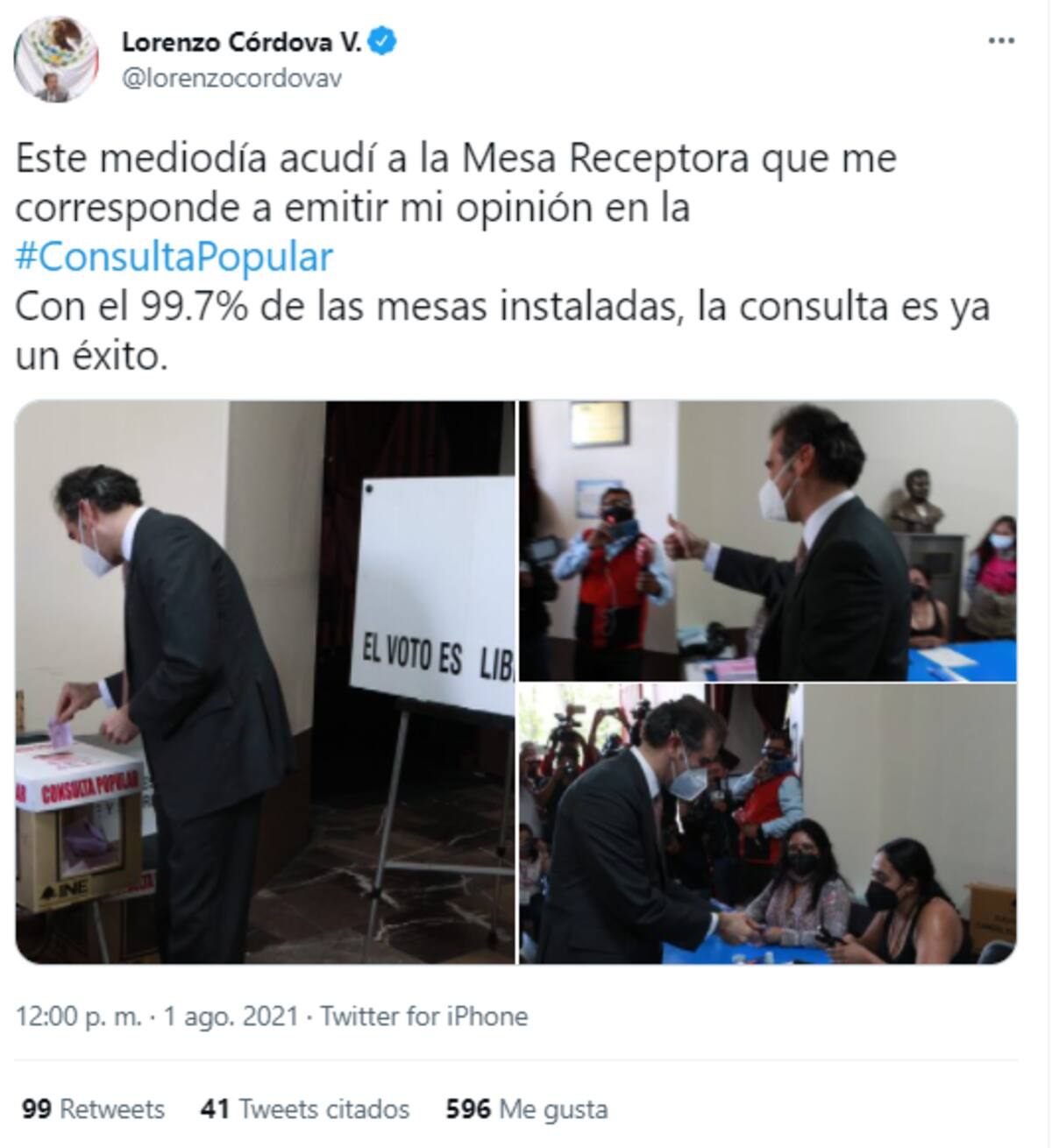 "Con el 99.7% de las mesas instaladas, la consulta es ya un éxito”.