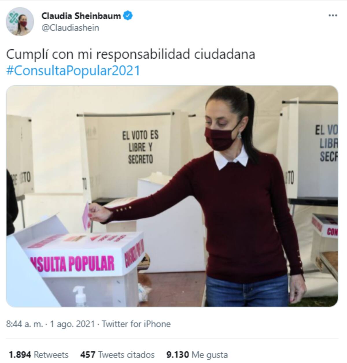 Durante la mañana de hoy, funcionarios como la jefa de Gobierno de la Ciudad de México, Claudia Sheinbaum, también acudió a emitir su opinión respecto a la Consulta Popular.