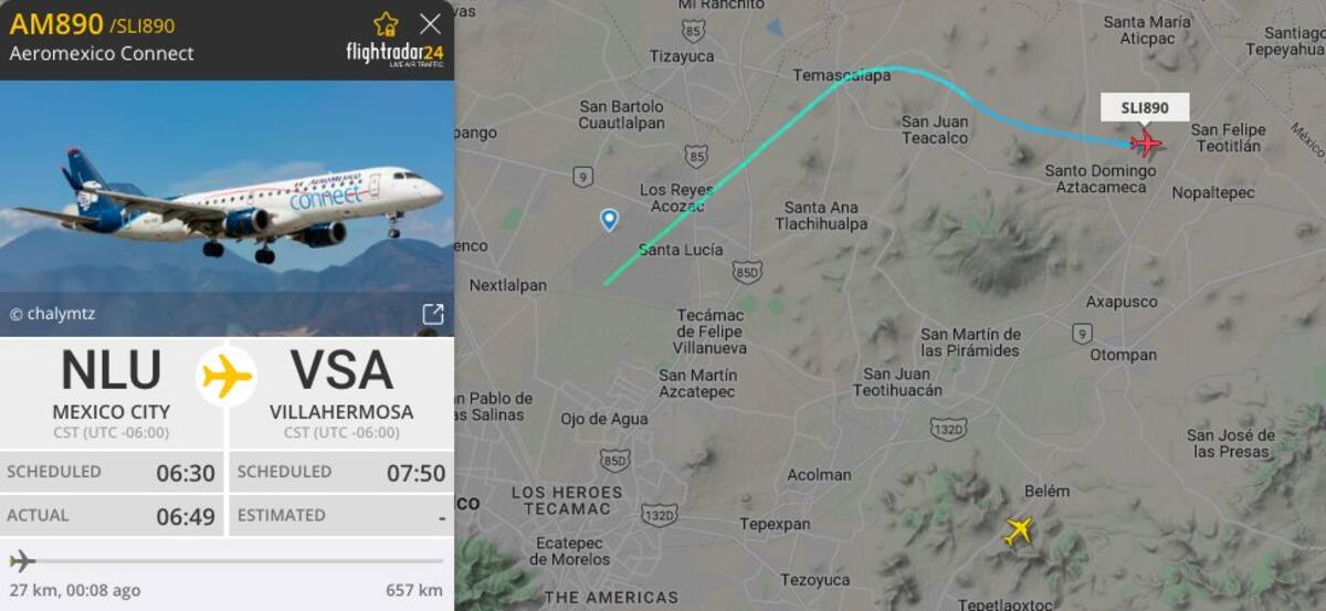 Como vuelo inaugural, el avión AM890 partió a las 6:49 de la mañana, con dirección al estado de Tabasco, de donde es originario el presidente Andrés Manuel López Obrador.