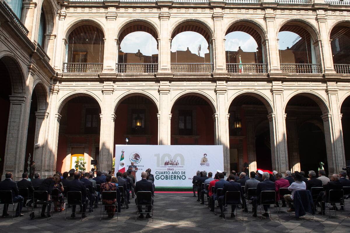En uno de los patios de Palacio Nacional y frente a los miembros de su Gabinete legal y ampliado, el mandatario abrió su discurso con una referencia a la pandemia que cobró la vida de miles de mexicanos.