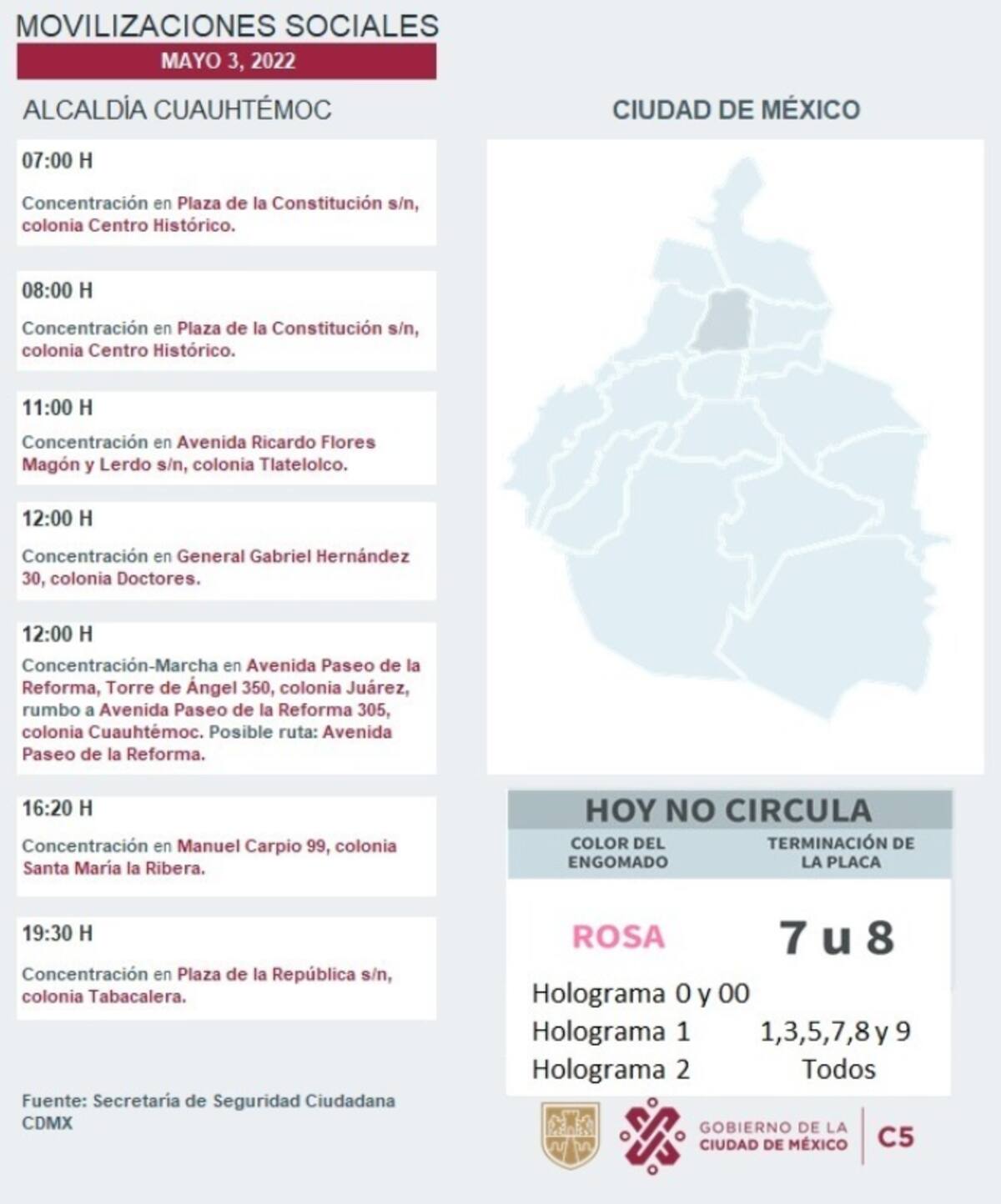 Movilizaciones, marchas y protestas para la CDMX este martes 3 de mayo