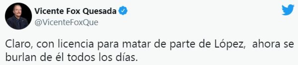 Con licencia para matar de parte de López, ahora se burlan de él todos los días”, publicó Vicente Fox.