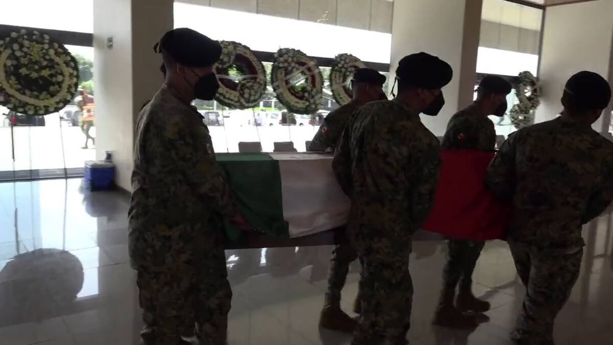 Aunado a ello, se observan imágenes de la ceremonia, donde aparece el titular de la Semar, Rafael Ojeda Durán, frente a 14 féretros cubiertos por la bandeja de México, fotografías de los fallecidos y arreglos florales.