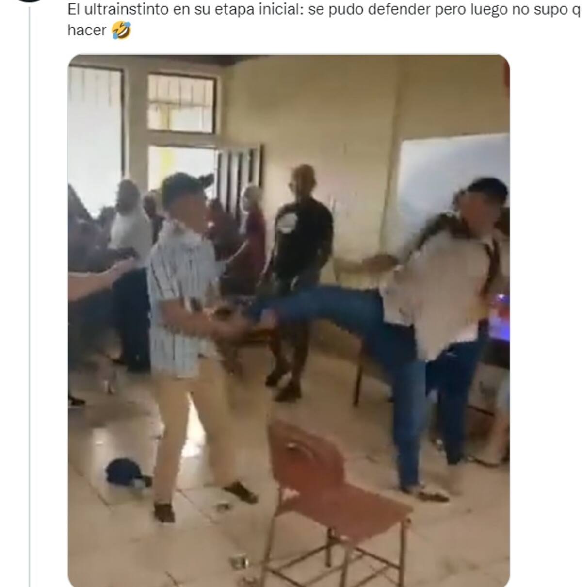 En las imágenes se puede observar a un grupo de personas adultas dentro de un salón de clases que iniciaron una pelea campal donde la mayoría decidió lanzar golpes, patadas, sillas y otros objetos.
