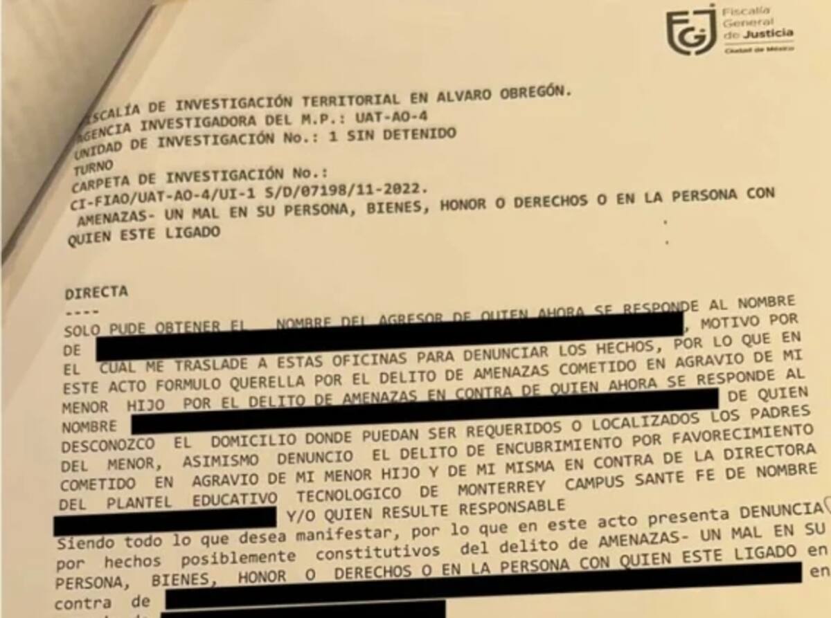 CIUDAD DE MÉXICO.- La Fiscalía General de Justicia (FGJ) investiga una agresión con un arma blanca de la que fue víctima un estudiante de la Prepa Tec, en el campus Santa Fe. El ataque fue registrado en un salón de clase y quedó grabado en un teléfono celular.
