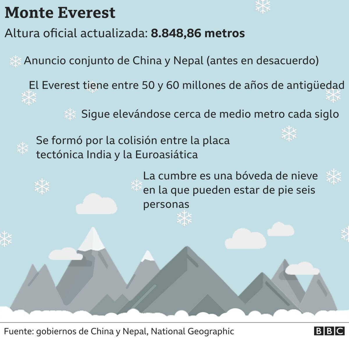 Los países acordaron una nueva altura de 8.848,86 metros. Hasta ahora no se ponían de acuerdo sobre si debía incluirse la capa de nieve en la parte superior.