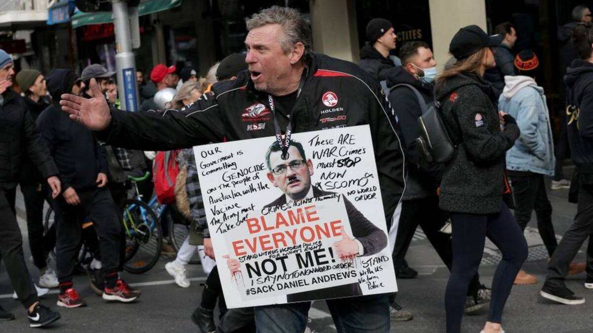 Otros portaban pancartas que decían "Baja tu máscara, levanta tu voz" y "Despierta Australia".