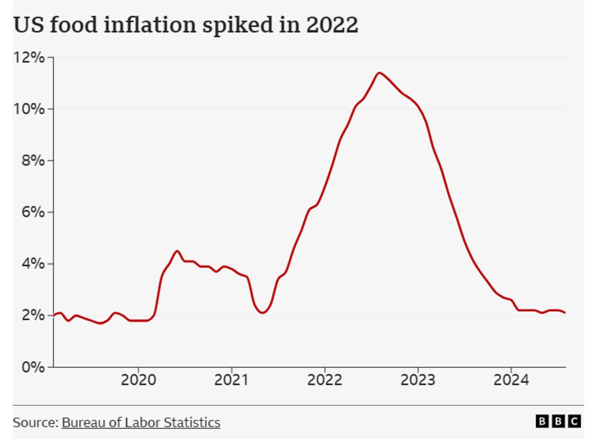 El costo de vida ha sido un tema candente en Estados Unidos en los últimos años. En abril de 2024, el 41% de los estadounidenses consideraba que el alto costo de vida era el principal problema financiero que enfrentaban, el nivel más alto desde 2005. La inflación general alcanzó un máximo de 9,1% en junio de 2022, mientras que la inflación de los alimentos llegó al 11,4% en agosto del mismo año. Aunque ambos índices han disminuido a menos del 3% actualmente, los precios de los alimentos siguen siendo un 27% más altos que a fines de 2019.