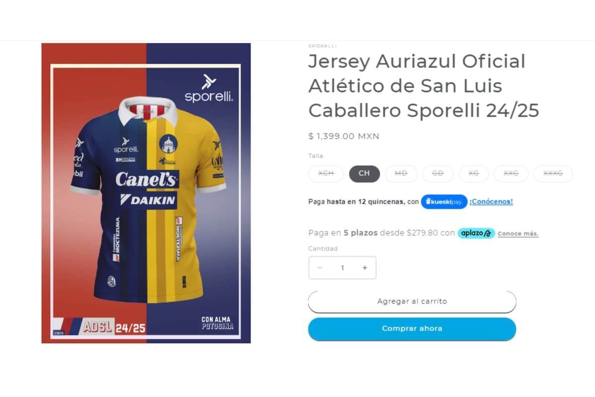 Un intento fallido de traer la nostalgia con un diseño caótico. 17 logos por toda la camiseta, ‘sin ton ni son’. Los colores originales mal utilizados, mitad azul, mitad amarillo, sin rayas, y un cuello blanco que no pega ni con cola. Lo más sorprendente: ¡ya está agotado! Costaba 1,399 pesos.