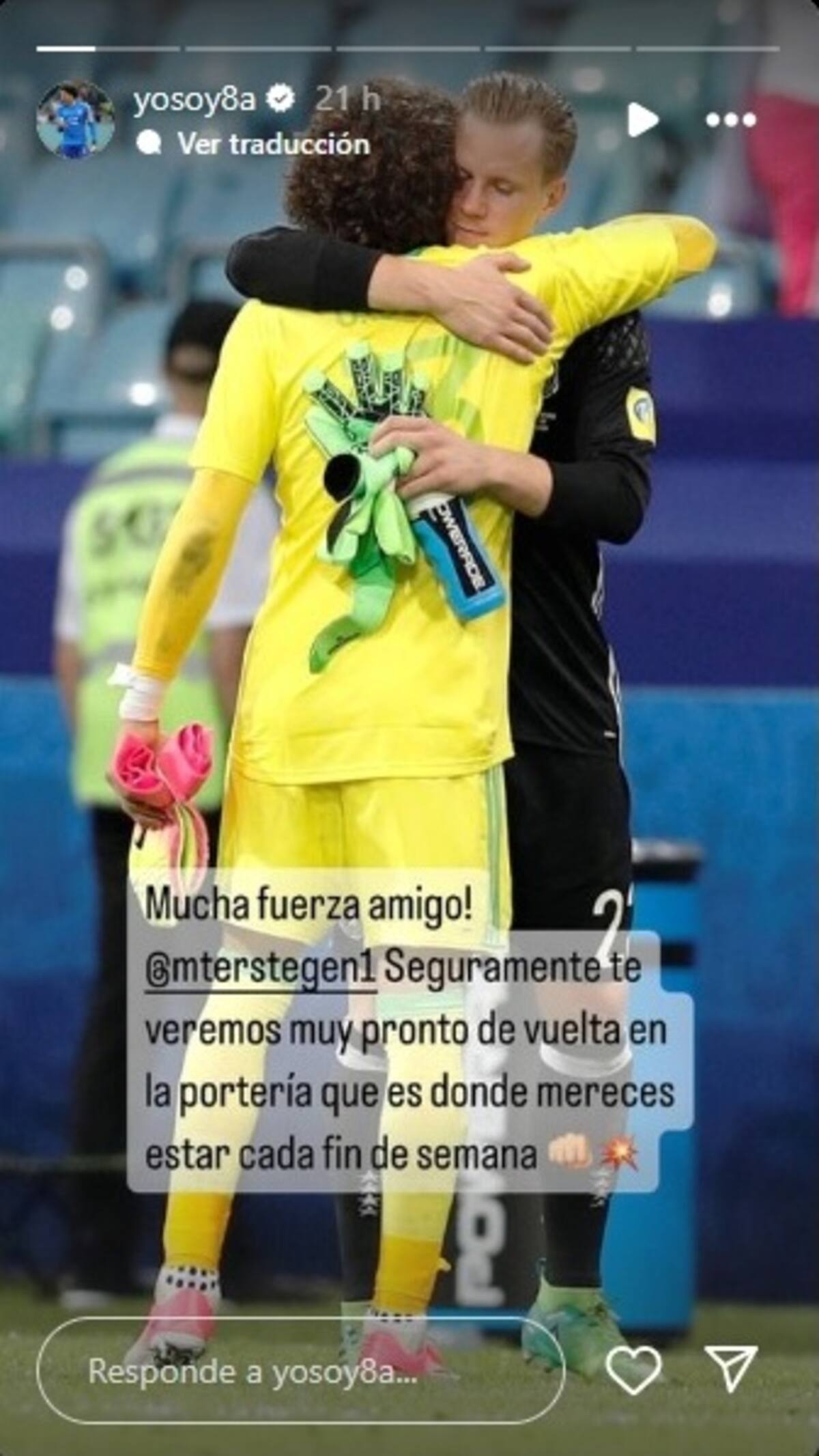 Ante esta desafortunada noticia, el guardameta mexicano Guillermo Ochoa, quien ha compartido cancha con Ter Stegen en diversas ocasiones, no dudó en expresar su solidaridad a través de sus redes sociales.