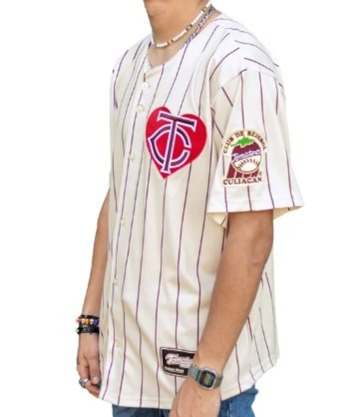 Amor guinda en estado puro. Los Tomateros llevaron su pasión al siguiente nivel con un uniforme decorado con un enorme corazón al más puro estilo del Chapulín Colorado.