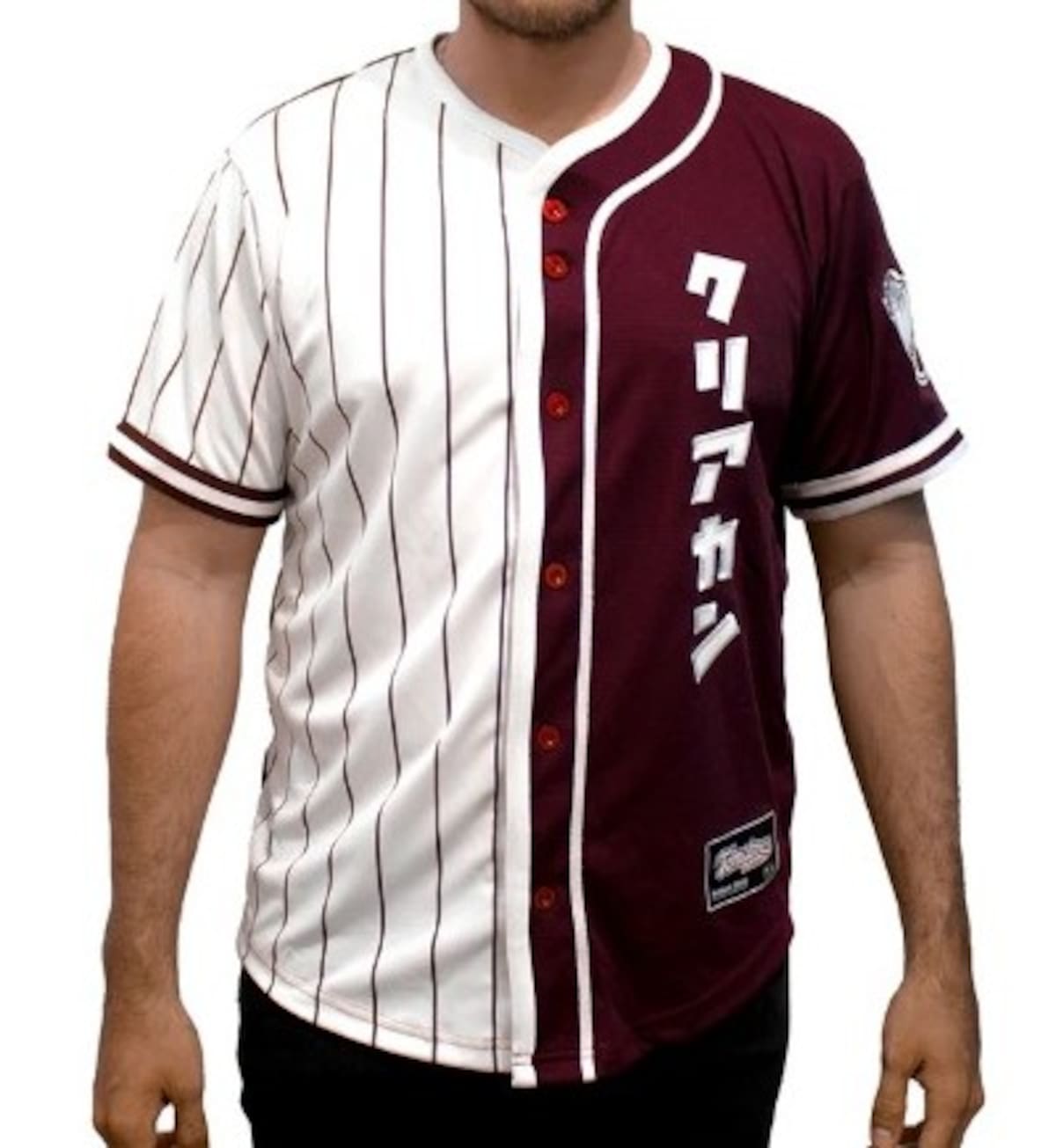 El uniforme, dividido en dos, combina rayas guindas y letras japonesas que dicen “クリアカン” (“Kuriakan”), traducido como "lata transparente“. Aunque el significado no tiene ningún sentido más allá de la fonética, el jersey no deja de ser un homenaje peculiar para los otakus beisboleros.