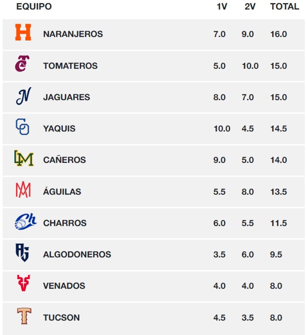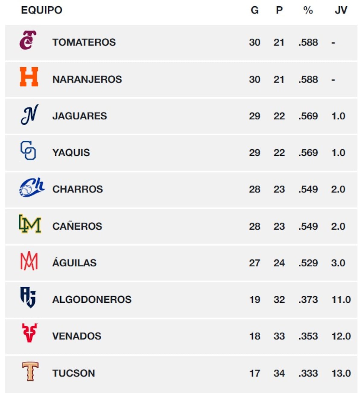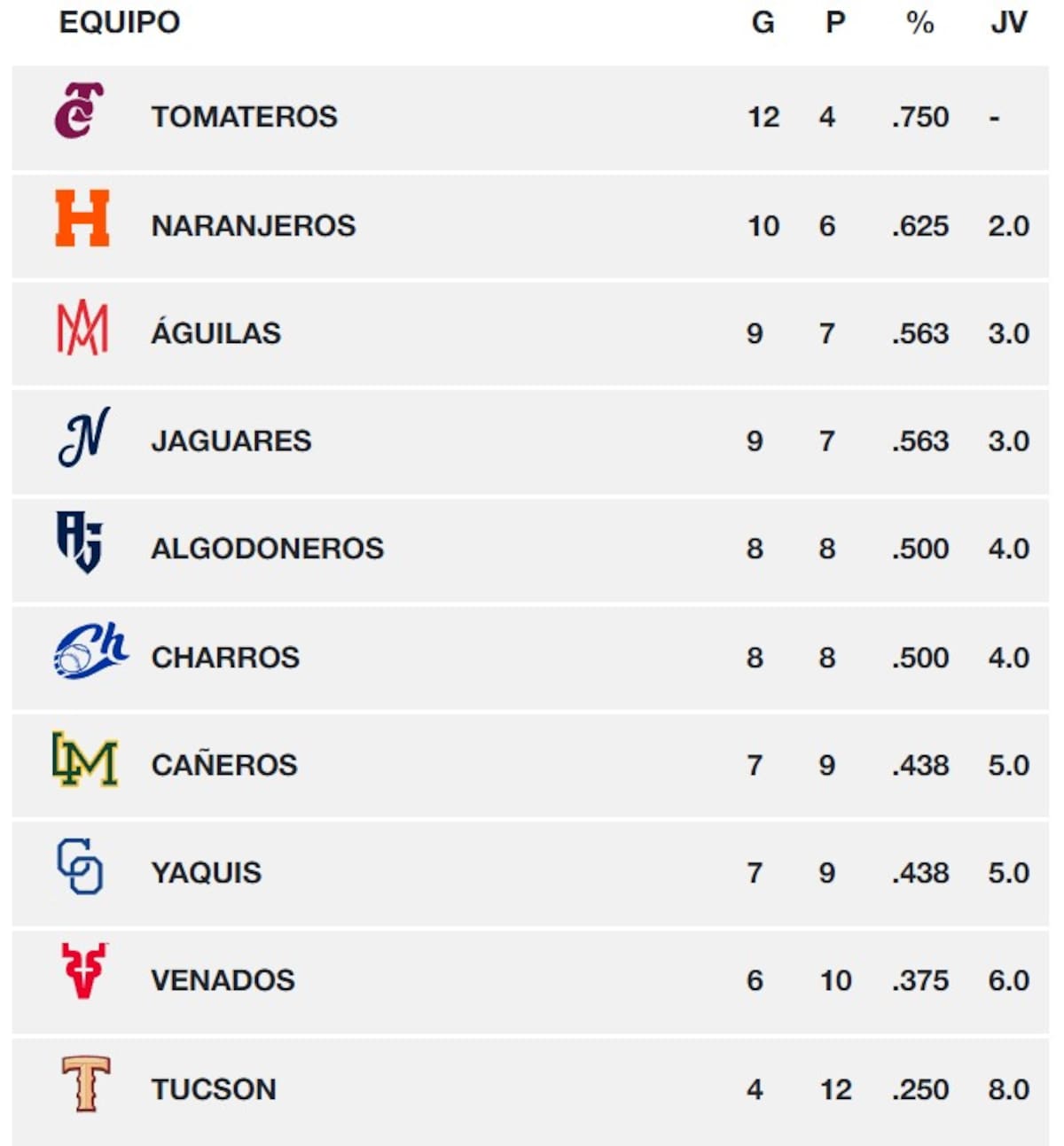 Tomateros y Naranjeros están mandones en la segunda vuelta; Tucson y Venados agonizan en la recta final de la temporada.
