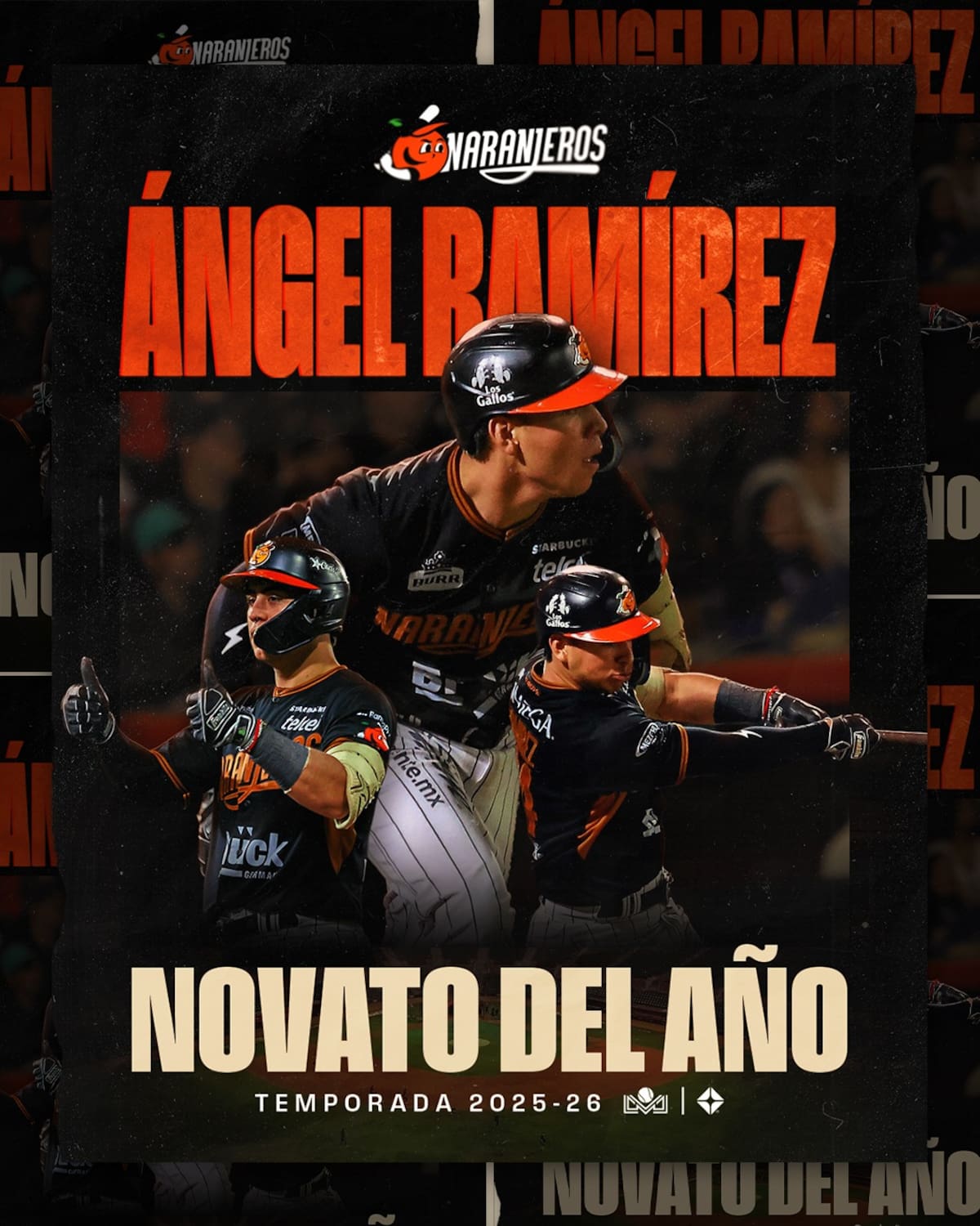 La temporada 2025-2026 de la Liga ARCO Mexicana del Pacífico dejó un nombre marcado entre los debutantes. Ángel Ramírez, jardinero de los Naranjeros de Hermosillo, fue reconocido con el Trofeo “Baldomero ‘Melo’ Almada” al Novato del Año, tras un rol regular en el que asumió responsabilidades clave y respondió con producción constante. Su desempeño no solo influyó en el esquema del equipo, también lo colocó como referencia entre los jóvenes del circuito.