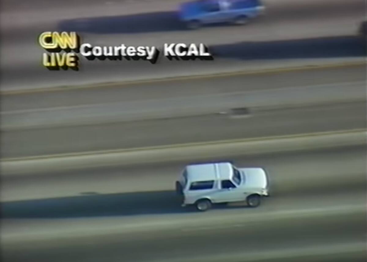 Las autoridades comenzaron a buscarlo y lo encontraron a bordo del Ford Bronco blanco, pero en ese momento se desató una persecución por Los Ángeles, donde decenas de patrullas y helicópteros iban tras de O.J., quien se apuntaba a la cabeza con una pistola, amenazando con quitarse la vida.
