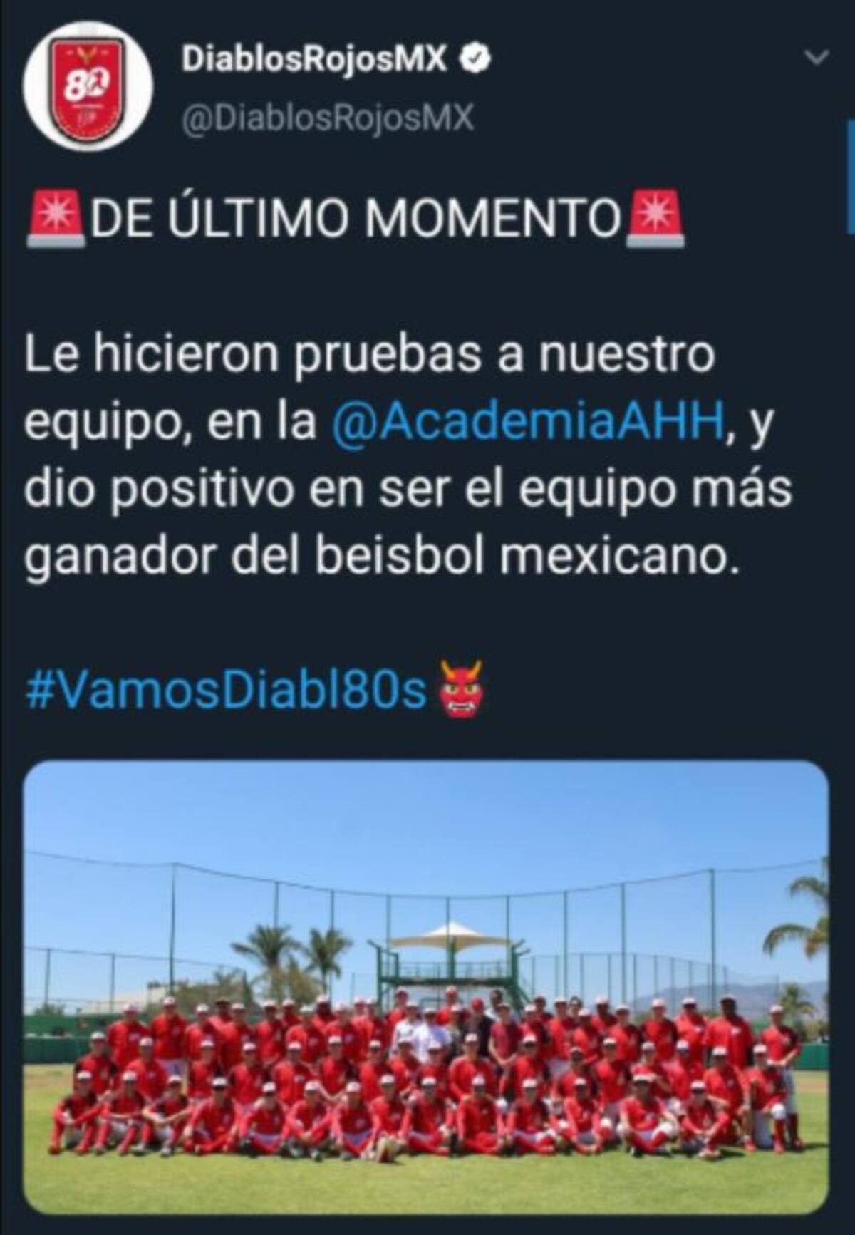 CIUDAD DE MÉXICO.- Los Diablos Rojos del México se mofaron del coronavirus como causante de problemas en el deporte y en la comunidad internacional, o, al menos, de las medidas para combatirlo.