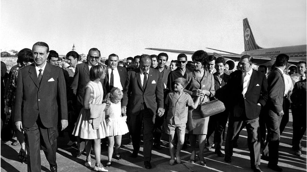En el aeropuerto de Madrid, a Di Stéfano no sólo lo espera con anhelo su esposa, Sara, y sus hijos, sino una multitud de aficionados.