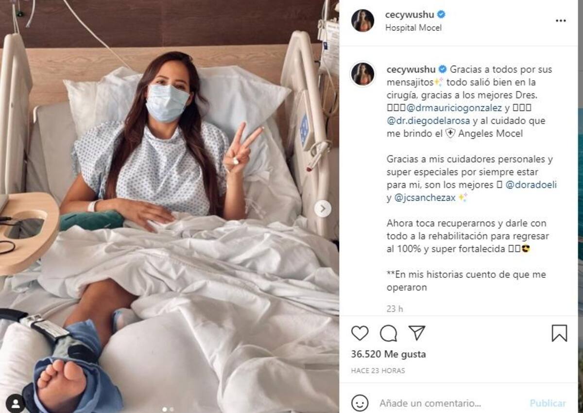Conocida como ‘Cecy Wushu’, la atleta originaria de Torreón subió a su cuenta de Instagram un par de fotografías de ella después de la cirugía a la que se sometió, misma que agradeció a sus fans por los mensajes recibidos y a los doctores que le practicaron la operación.