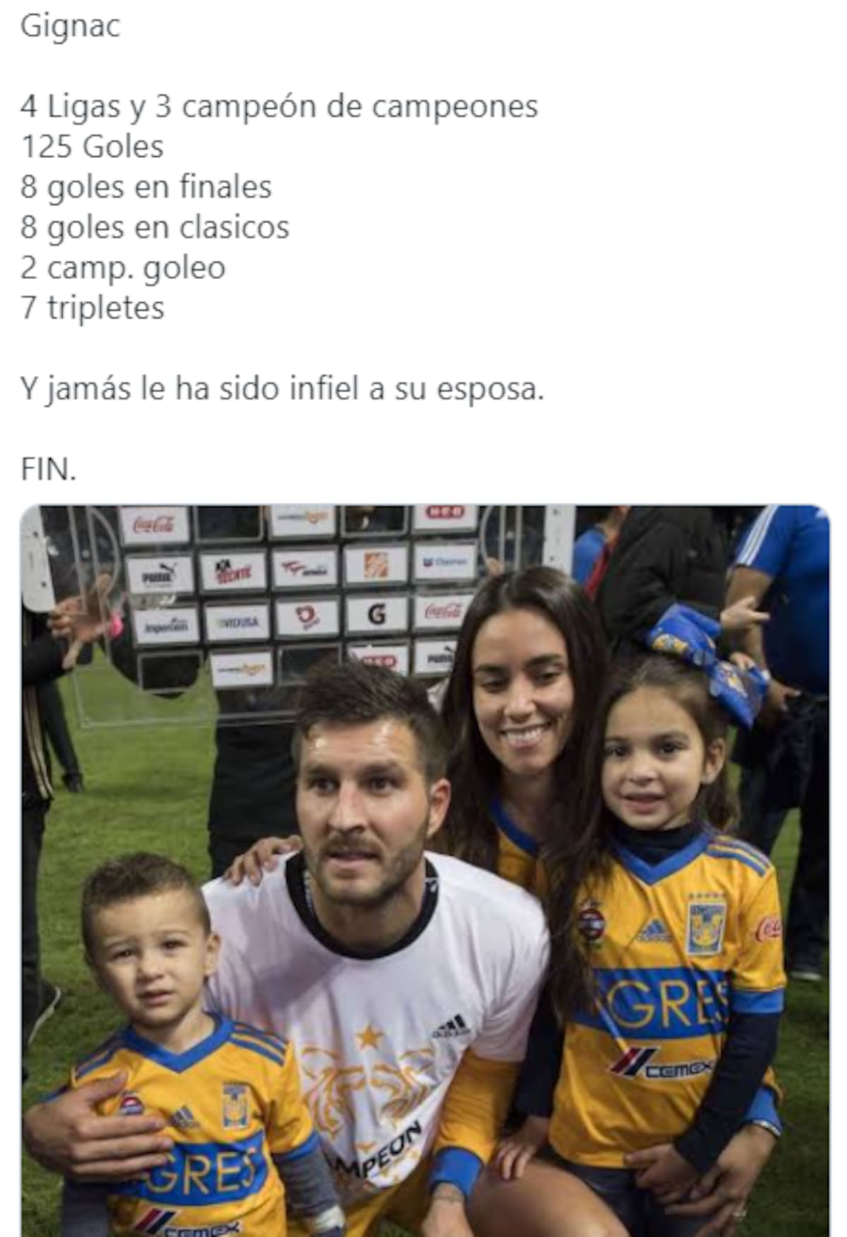 MONTERREY, Nuevo León.- André Pierre-Gignac, subcampeón vigente de la Euro con Francia y delantero estrella de Tigres, se convirtió en tendencia de redes sociales este miércoles al ser señalado por una supuesta infidelidad con la maestra de su hijo.