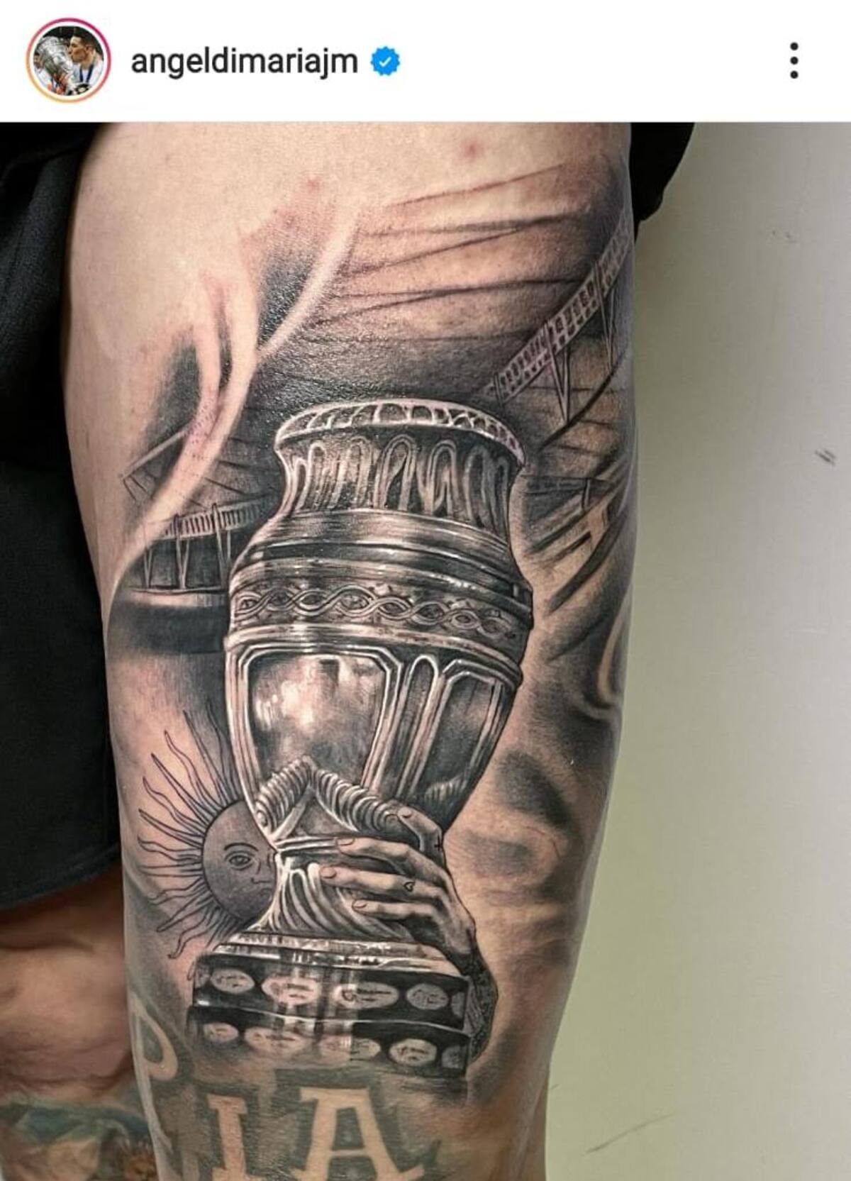 Ángel Di María, quien anotó el gol del título de Argentina en la Copa América 2020, se tatuó el trofeo.