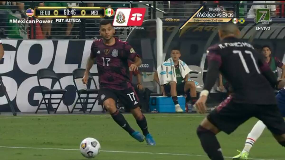 MINUTO 50. ¡Orbelín Pineda cerca! El futbolista del Cruz Azul se quedó a centímetros de conseguir el primer gol para México y mandó su disparo a un costado del arco estadounidense.