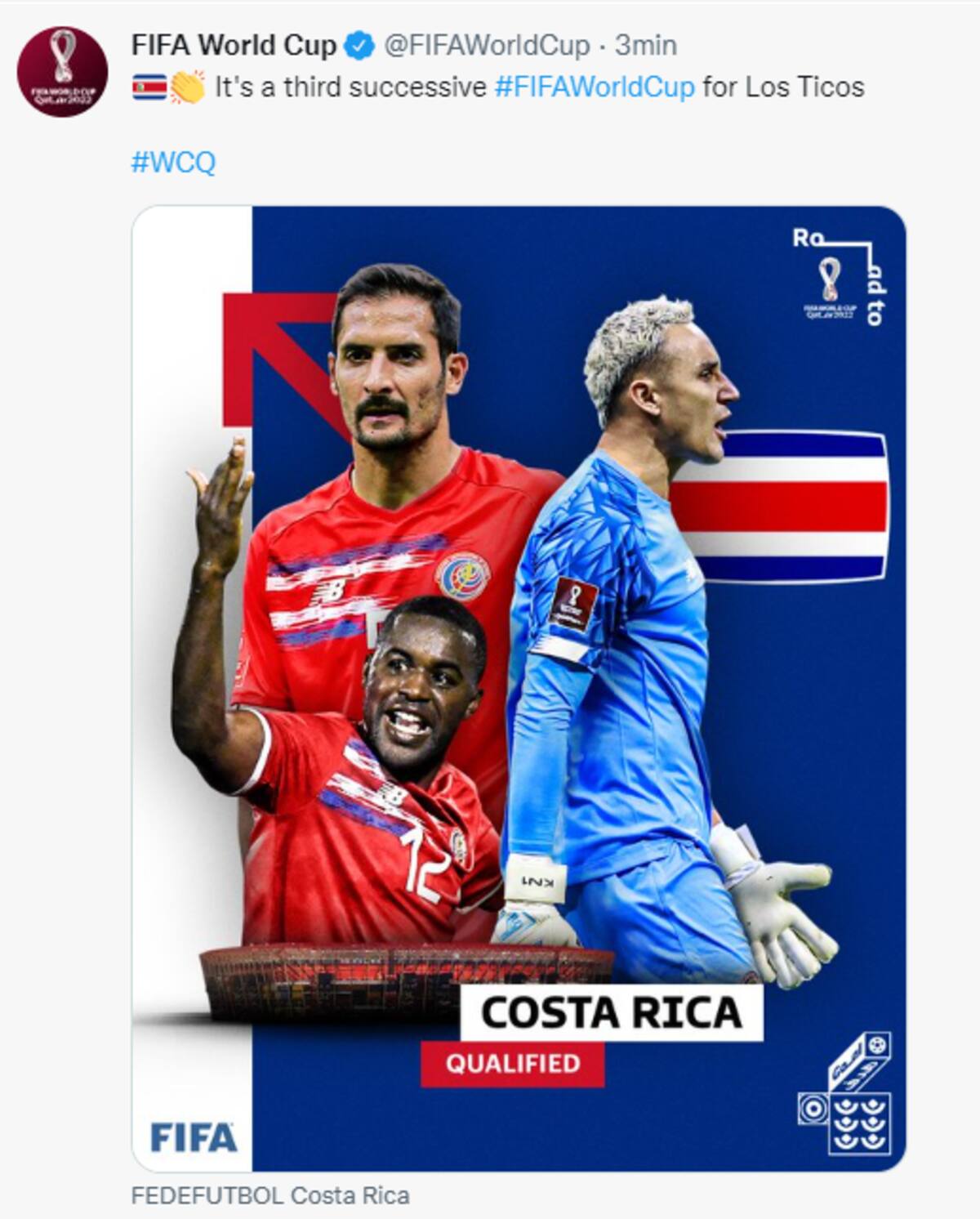 Costa Rica formará parte del Grupo E en la Copa del Mundo 2022, considerado el de la "muerte", formado también por Alemania, España y Japón. Será el tercer Mundial consecutivo para la 'Sele'.
