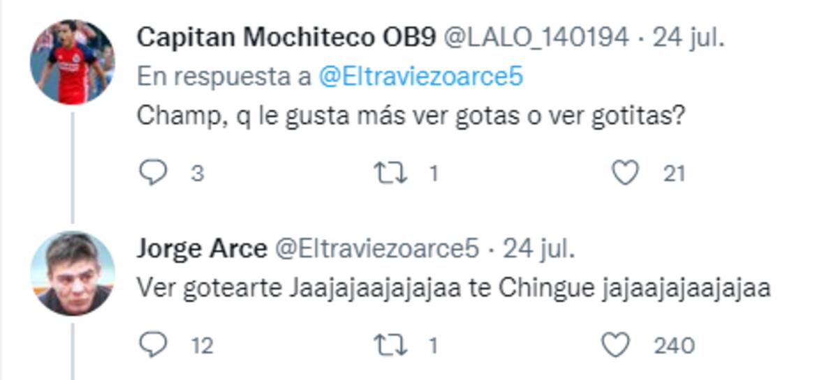 Algunos usuarios aprovecharon el momento para intentar burlarse del 'Travieso' Arce al preguntarle si le gusta "ver gotas", en forma de albur, pero el exboxeador salió con una mejor respuesta, al responder "ver gotearte". "Después de tanto golpe... ve nada más cómo quedaste", le escribió una persona.