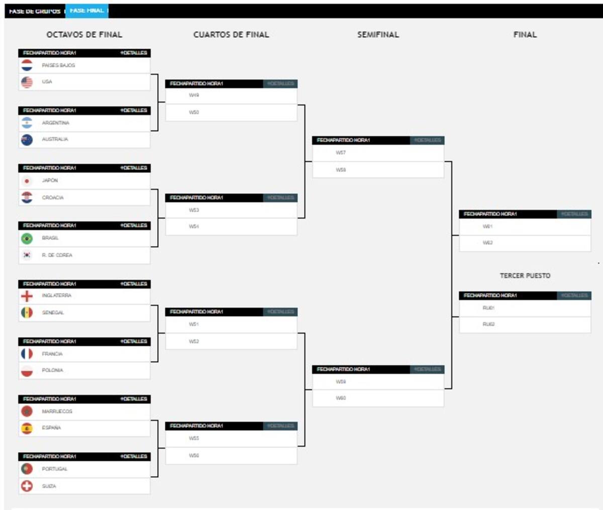 A continuación te presentamos cómo se jugarán las llaves y cruces entre los clasificados a la ronda eliminatoria del mundial (octavos, cuartos, semifinales y final).