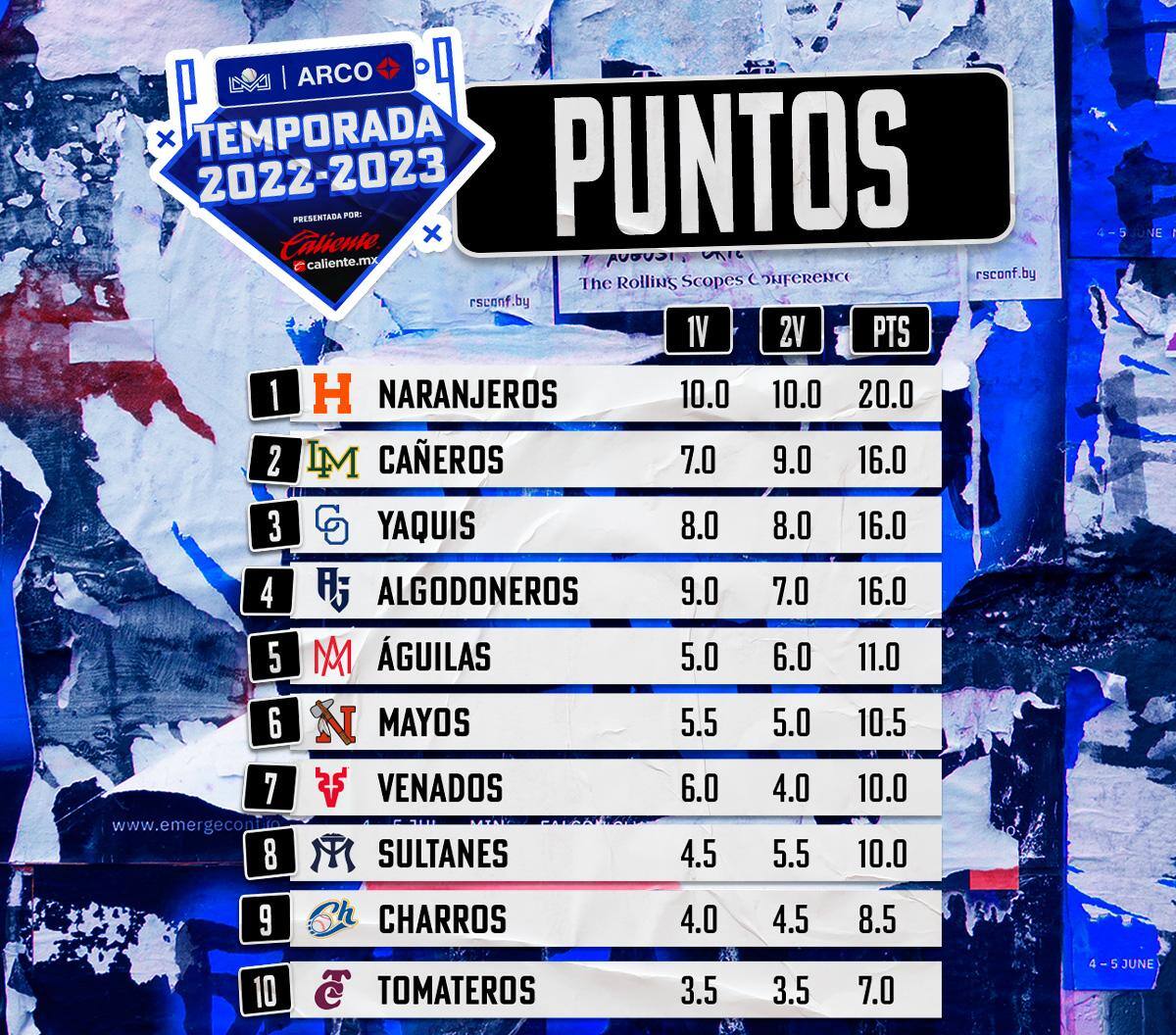 A falta de las dos series, los tapatíos se sitúan en la novena posición del standing de puntos, con 8.5 unidades, mientras que los sinaloenses se ubican en el sótano, con solo 7.0. De esta manera, las dos organizaciones están obligadas a prácticamente ganar sus seis juegos restantes.
