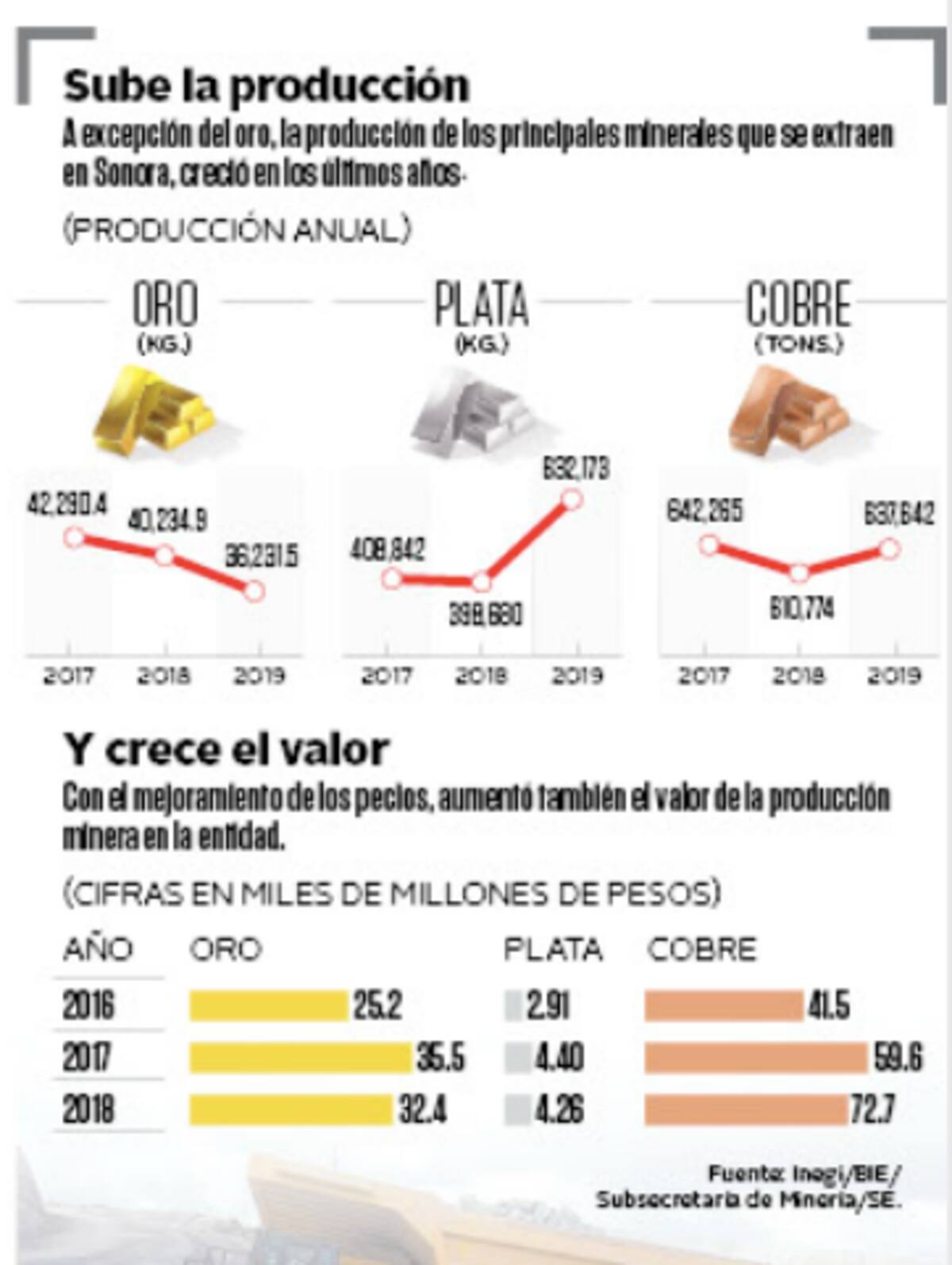 Con su vocación minera, Sonora ocupa el primer lugar nacional en la producción de oro y cobre y es puntero en la extracción de plata, es único productor de minerales como la wollanstonita y tiene en la mira la extracción del metal del futuro: El litio.