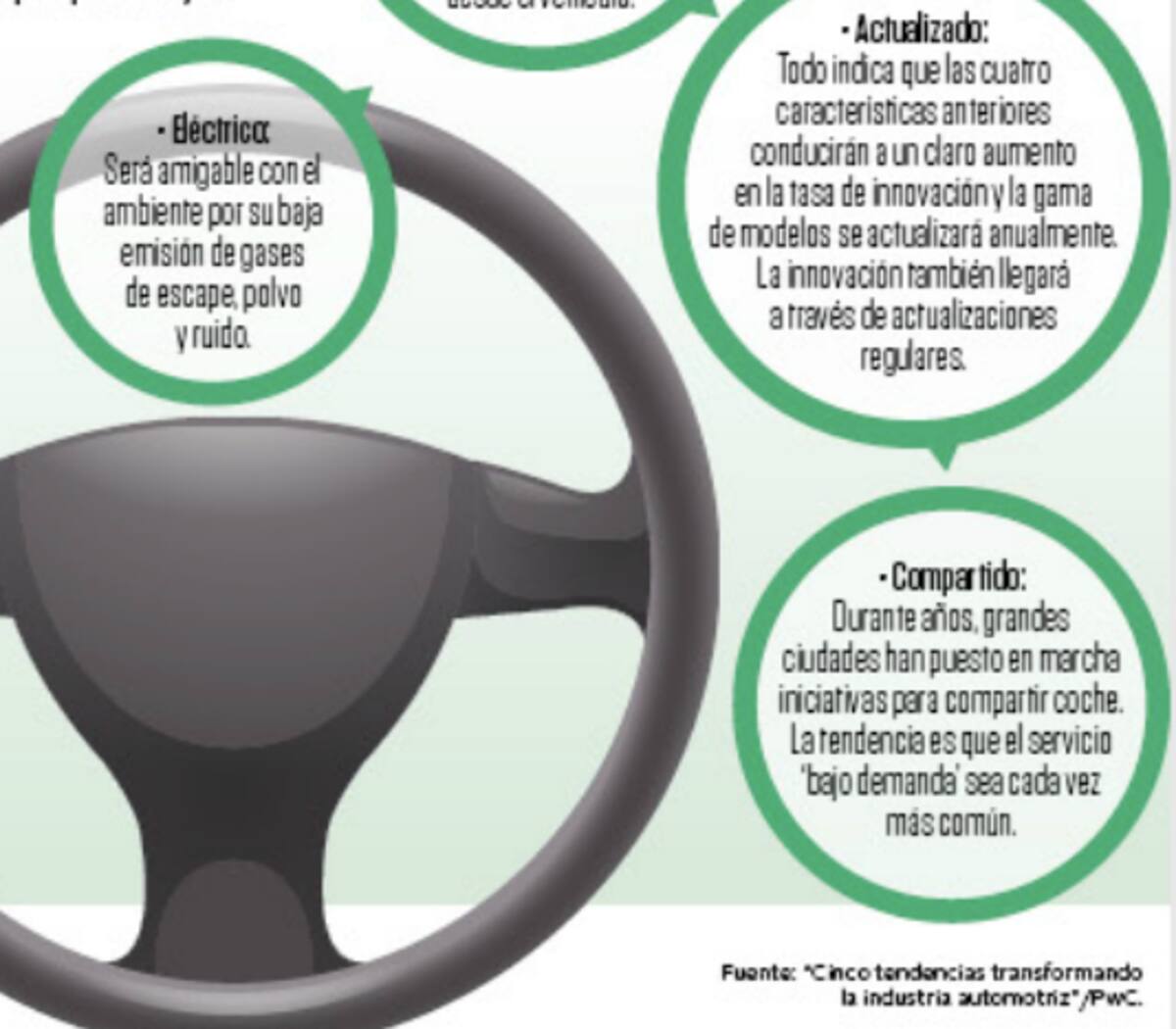 Así lo estima PriceWaterhouseCoopers (PwC), una de las firmas de consultoría más grandes del mundo, en su reciente informe “Cinco tendencias transformando la industria automotriz”.