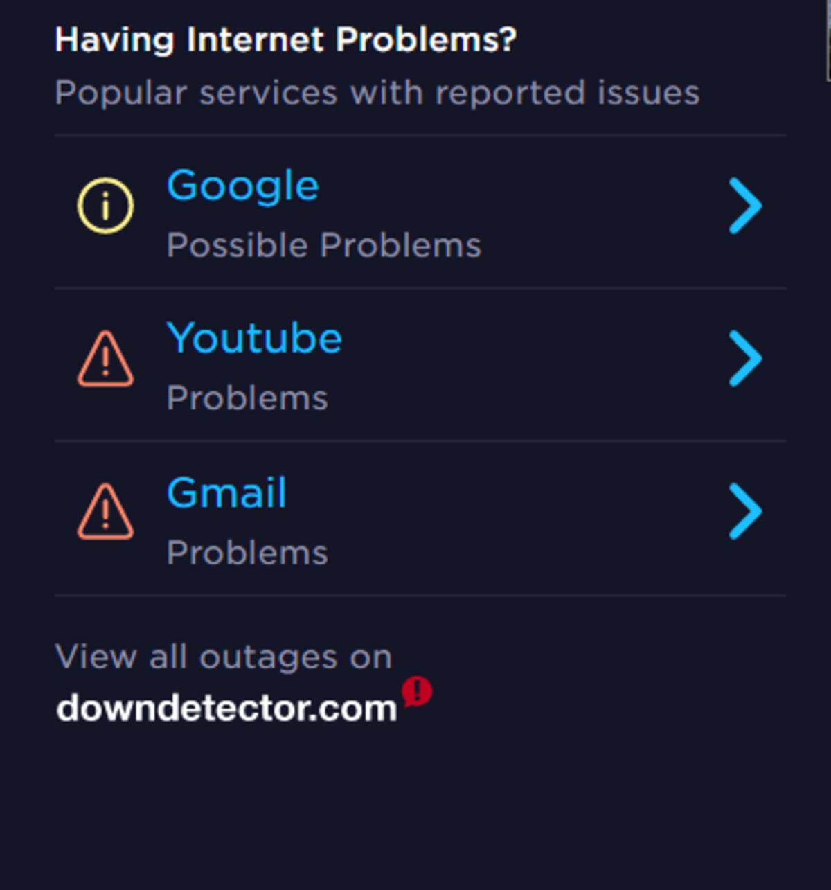 De acuerdo al portal DownDetector, se están teniendo problemas para conectarse a Facebook, Twitter y Google.