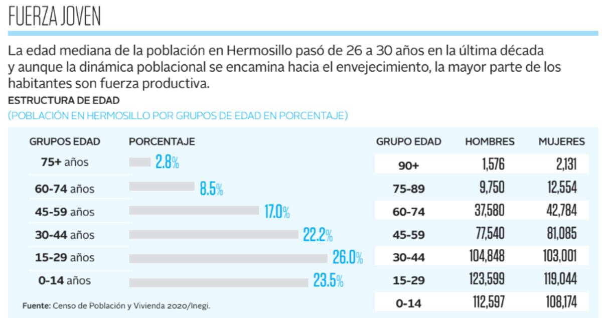 Mientras que en 2010 la edad mediana de los hermosillenses era de 26 años, pasó a 30 años para 2020, lo cual es un signo de una sociedad que avanza y se moderniza, de acuerdo con Leonardo Coronado Acosta, experto en Demografía de la Unison.