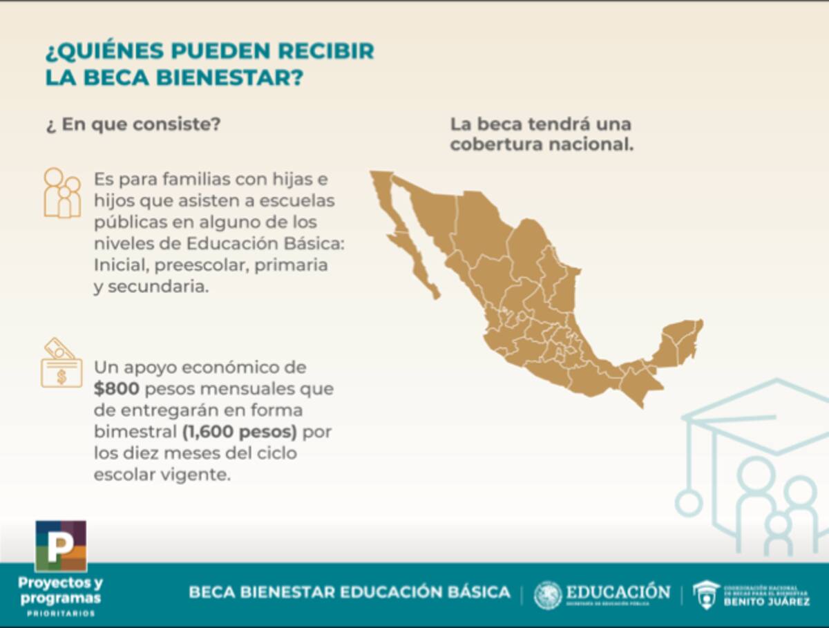CIUDAD DE MÉXICO.-Para poder apoyar a los jóvenes en sus estudios el Gobierno de México lanzó una beca llamada Beca Bienestar para las Familias de Educación Básica en la que mensualmente otorga la cantidad de 800 pesos para que sigan en la escuela.