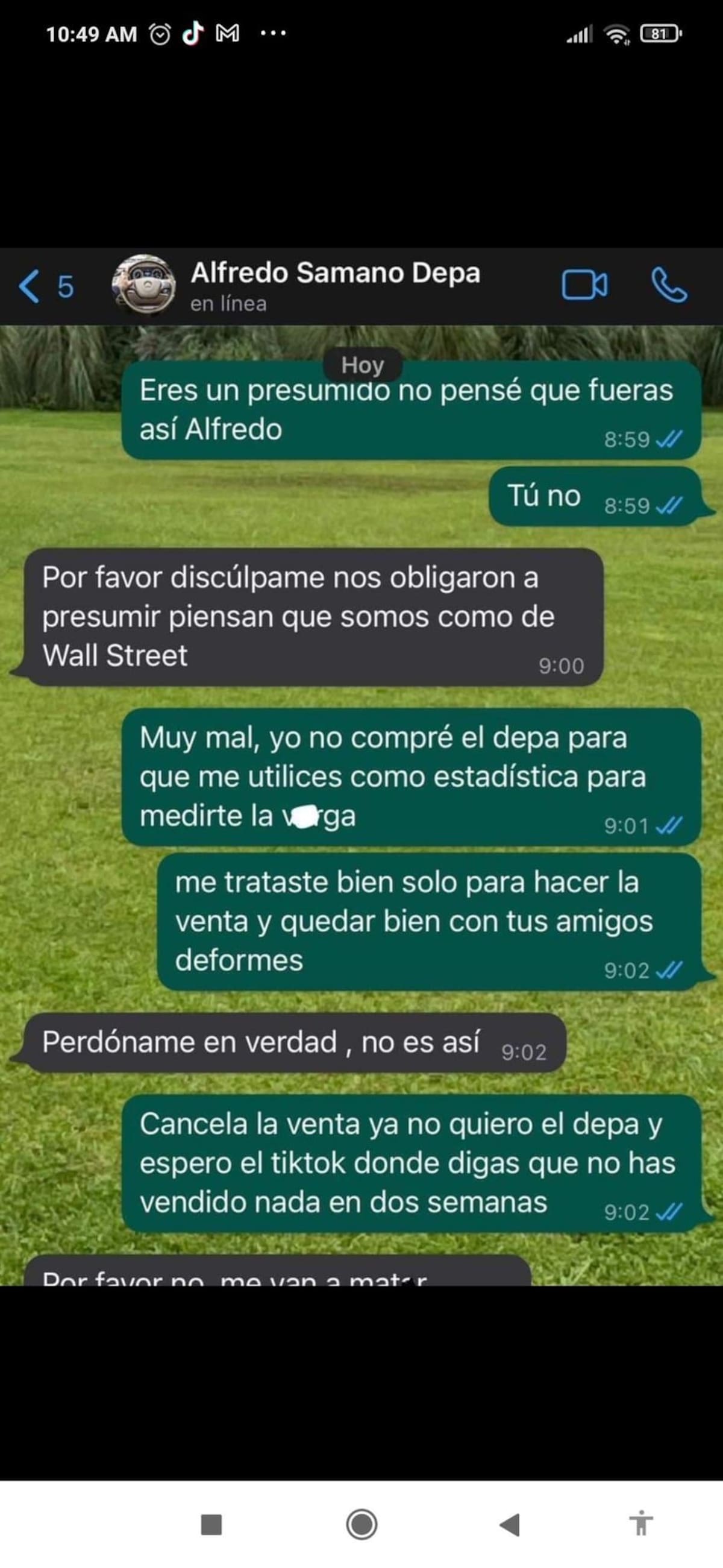 "Cancela la venta, ya no quiero el depa y espero el TikTok donde digas que no has vendido nada en dos semanas".