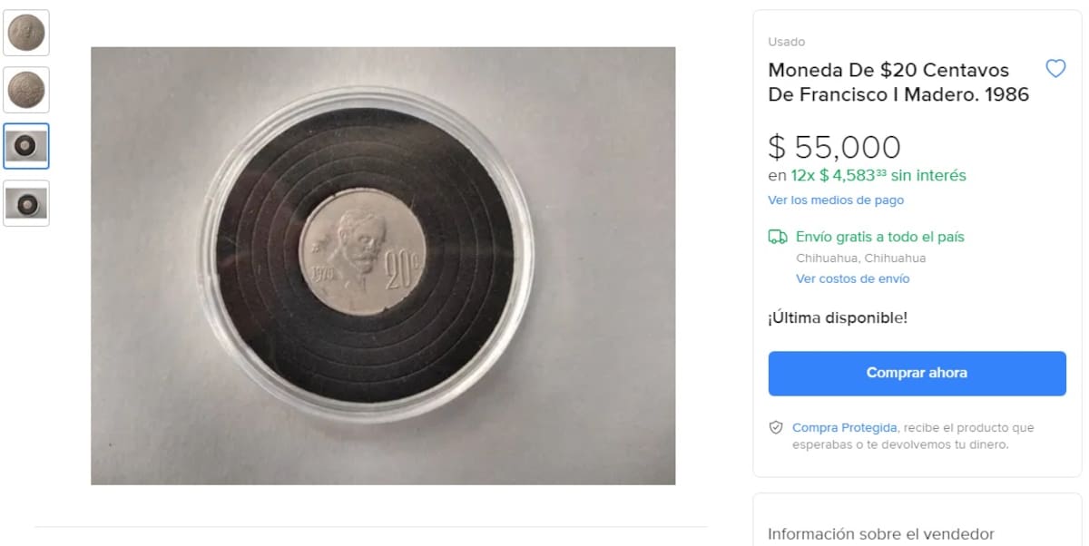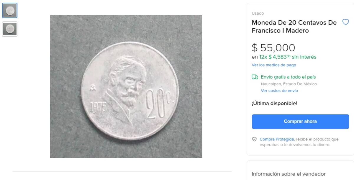 Características de la moneda de 20 centavos de Francisco I. Madero que se ofrece hasta por 55 mil pesos en internet