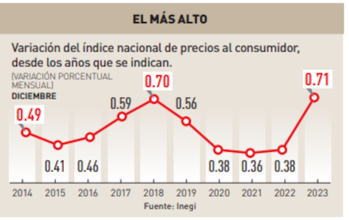 Inflación en México cierra 2023 en 4.66%, por arriba de lo esperado