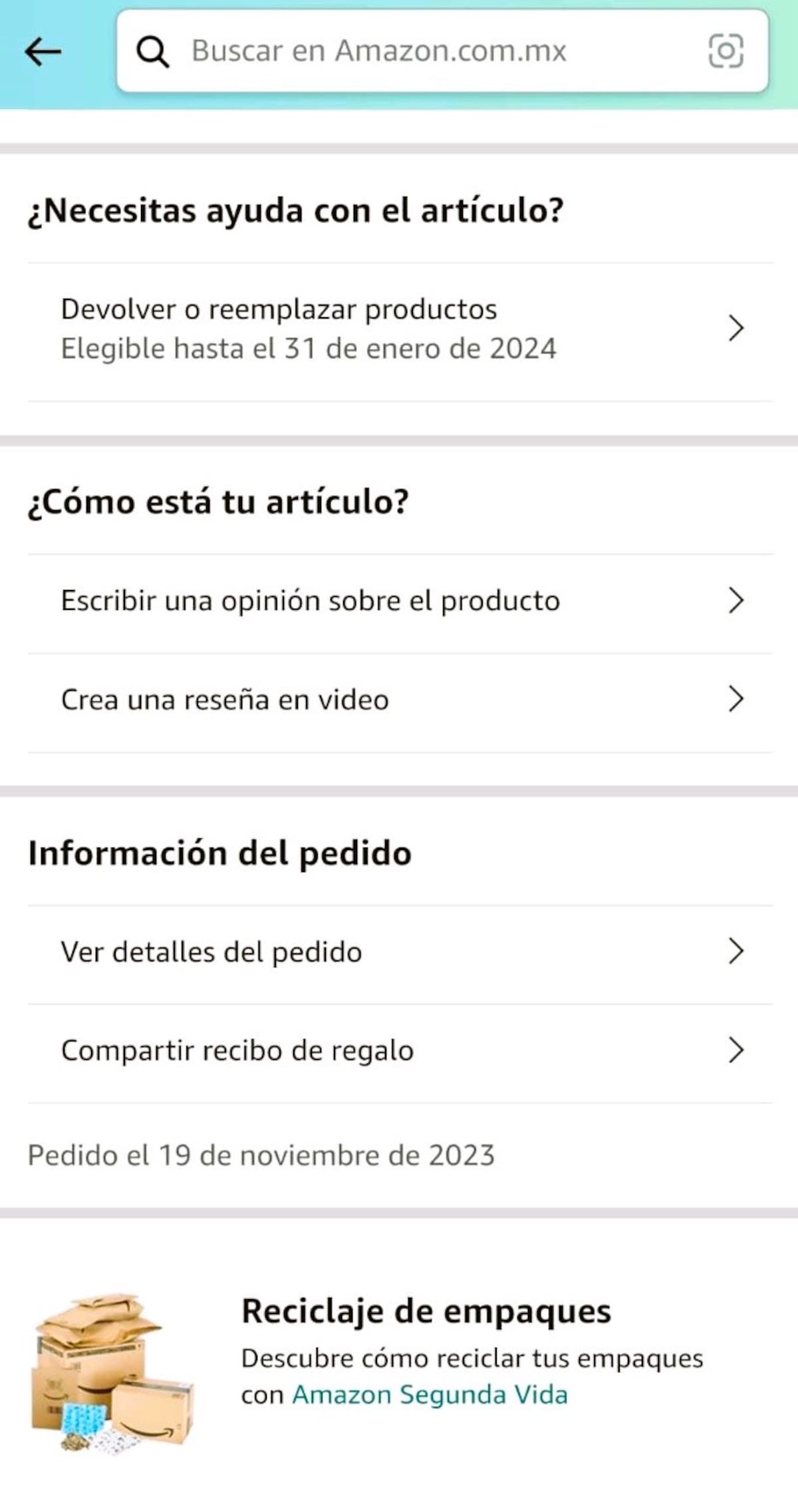 Ver detalles del pedido: Una vez seleccionado el artículo, el usuario debe dirigirse a la sección de “Mis pedidos” o “Detalles del pedido” para obtener más información sobre la transacción.