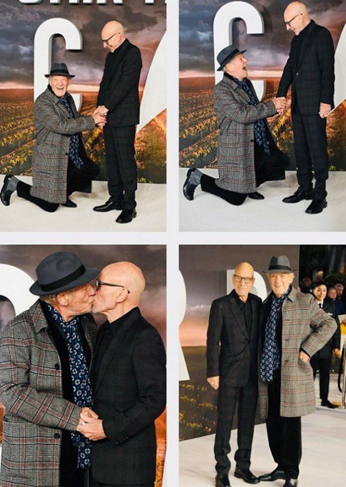 McKellen hizo el momento aún más memorable al arrodillarse y proponerle matrimonio en broma. Stewart dijo "sí", por supuesto.